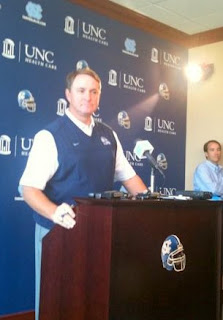 North Carolina holds its first news conference of the season Monday, and this one will be a bit different than your normal season-is-here type of affair.The news conference will start around 11:30 a.m., and you can expect UNC to release its first depth chart of the season. That will give fans an indication of what's happening with the program.